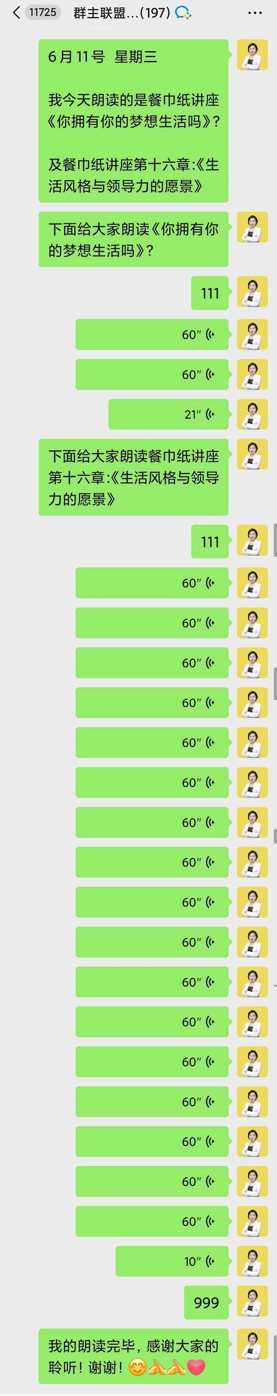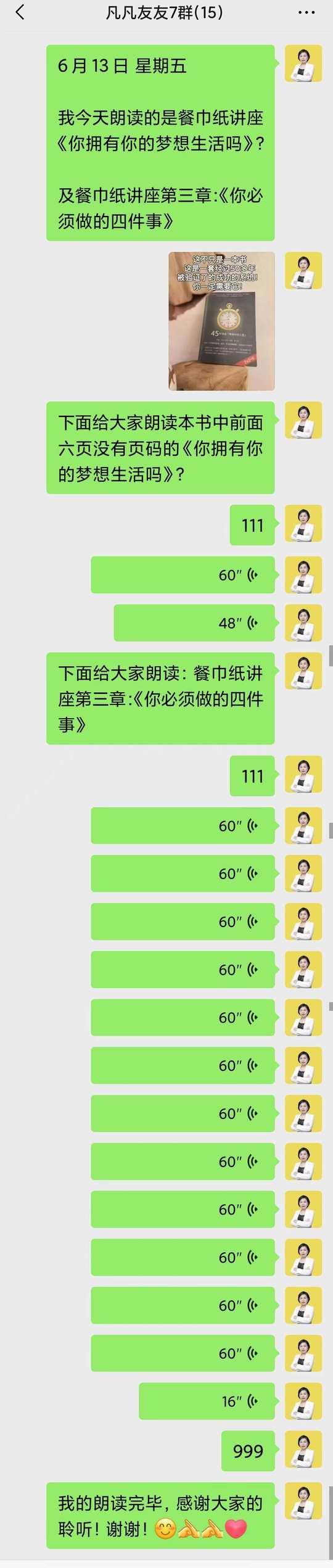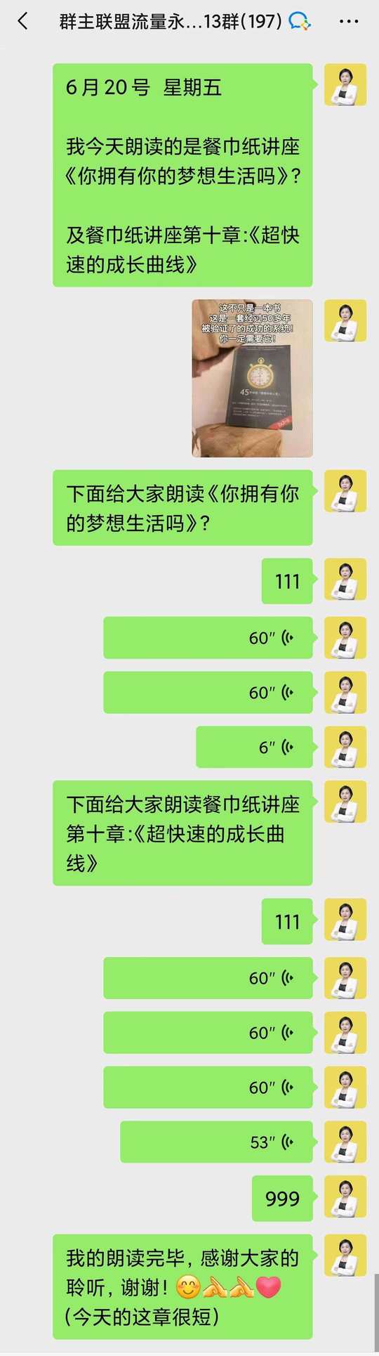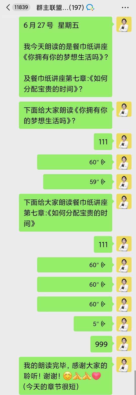 每天早上七点和教练一起晨读之后,再和伙伴们一起朗读: