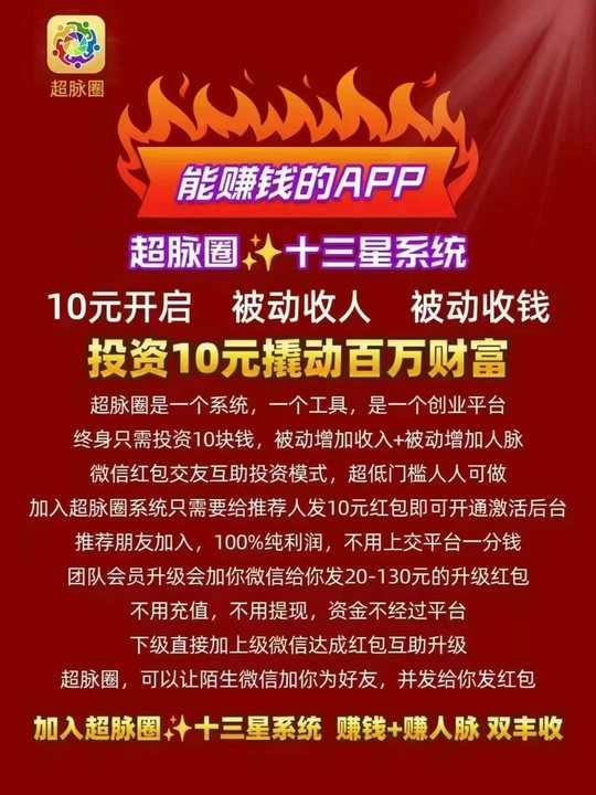 - 超脉圈app是一款被动加好友收红包的一款神奇工具