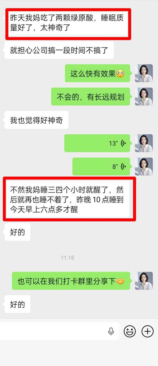 ❤️会员妈妈昨天第一次吃绿原酸,今天就来反馈说妈妈睡眠质量好了,真太神奇了,还担心以后怕用不上了[捂脸]国企大公司,放心