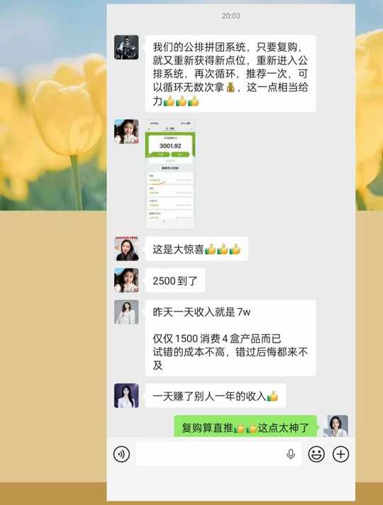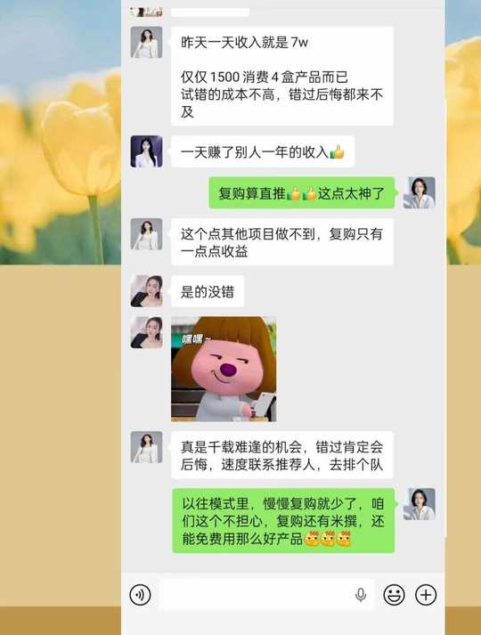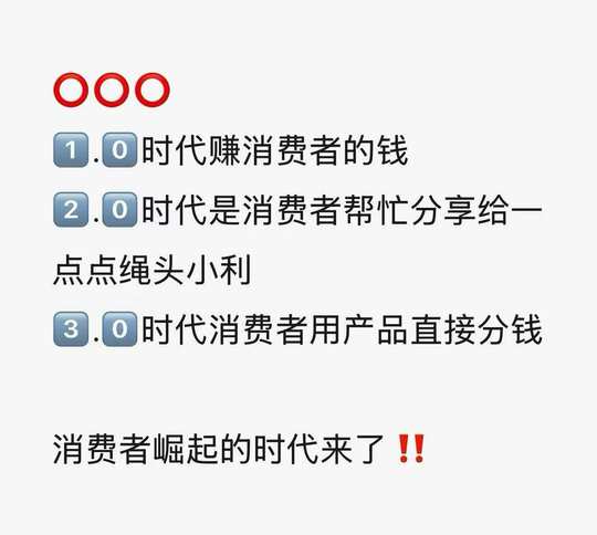 ❤️哪有这么好的事⁉️ 不推广也有💰⁉️💰从哪里来分⁉️ 就是拼团逻辑:那些大量行动出结果的人,他们的人脉资源贡献给了那些没分享的人,把利润分给了大家,分给那些消费者,以触动更多的人参与分享这个事业。 且用过产品的都赞叹:这么好的产品!加上这么好的商业模式,看懂的人都睡不着
