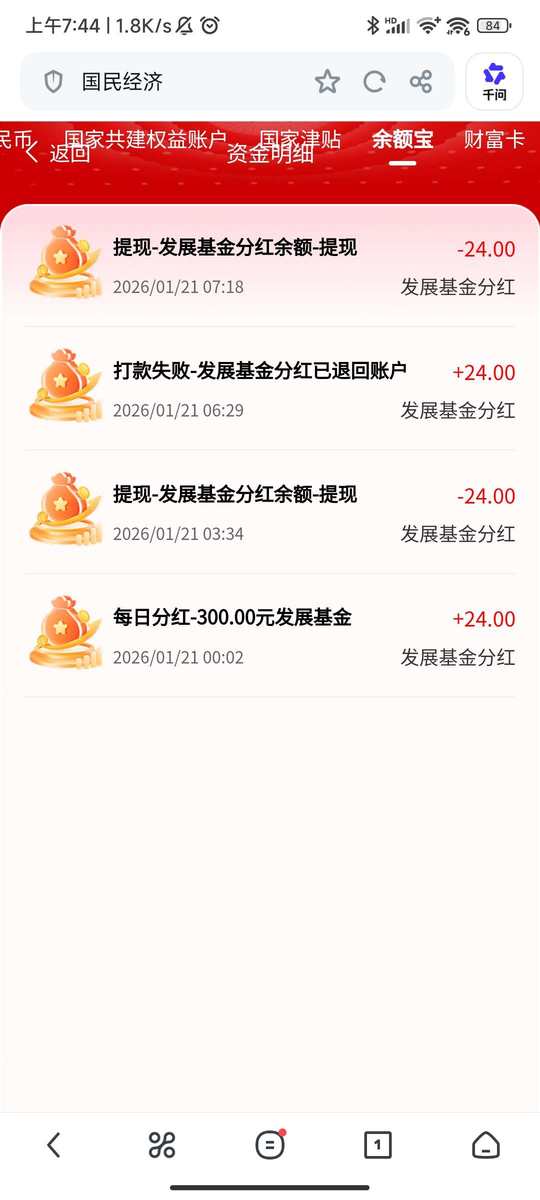 分红到账啦