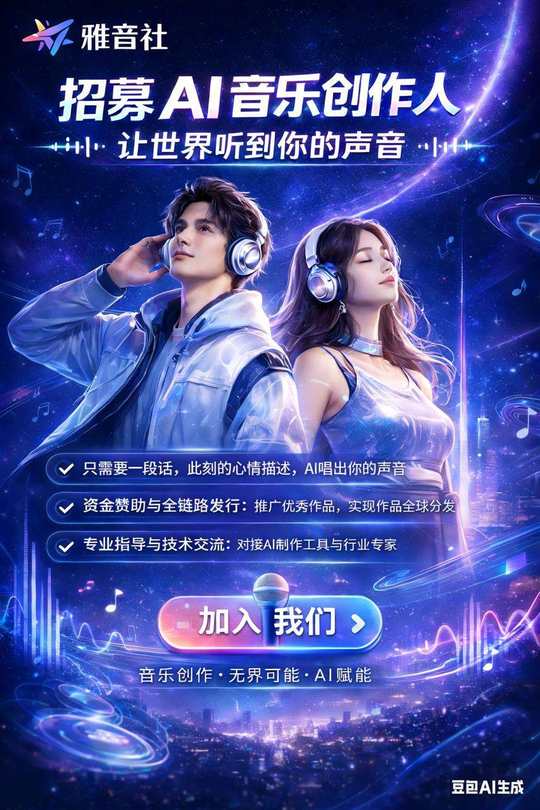 音乐 + AI,已经不是概念了。 我们现在就在做 AI 音乐推广。 不看学历、不讲背景, 能不能做出结果,只看你肯不肯行动。 星声音乐协会面向社会招募音乐推荐官, 按周结算,有明确机制,做多少,拿多少。 不适合想快钱的人, 更适合愿意踏实做事、 把一件事长期跑下去的人。