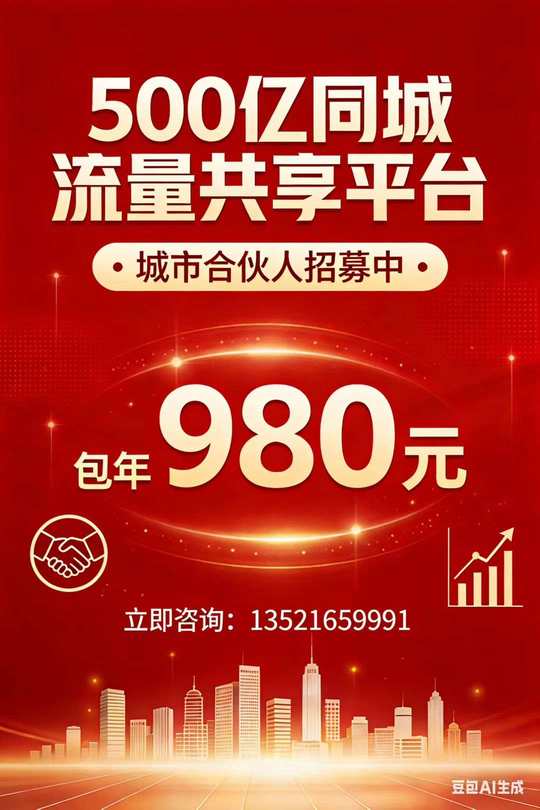 500亿同城流量共享平台,招募城市合伙人,980元,包年随便卖[庆祝]