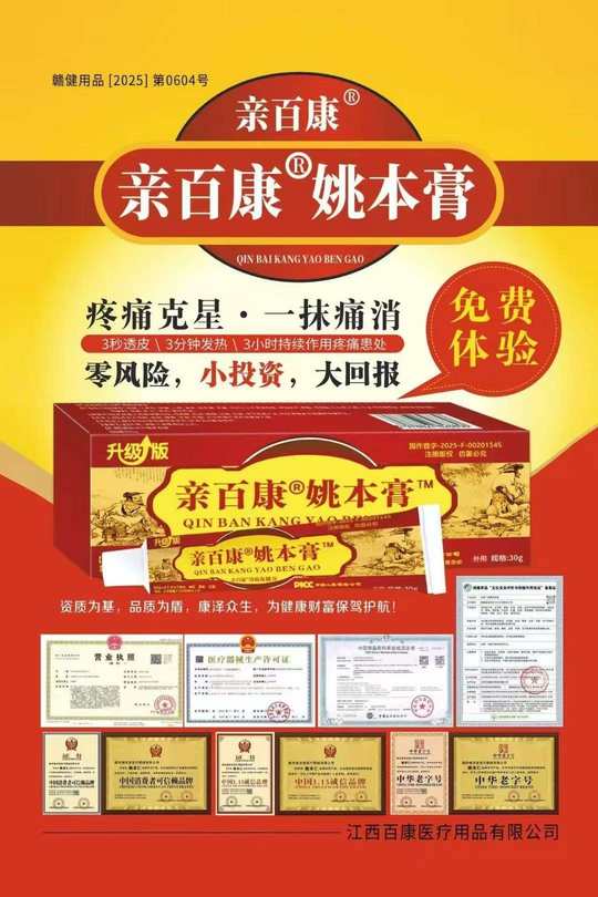 越来越多的人转型痛症市场,据统计疼痛市场是白酒的3倍,保健品的10倍!亲百康膏大量招聘合伙人,欢迎了解体验小商品大商机[庆祝]