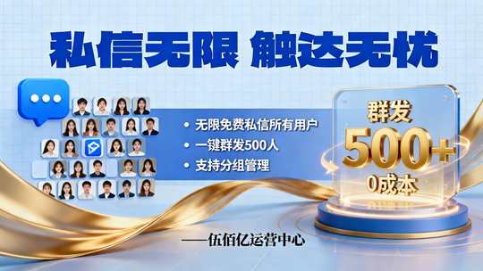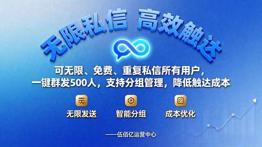 无限免费私信:可无限、免费、重复私信所有用户,一键群发500人,支持分组管理,降低触达成本