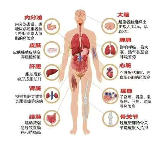俗话说,“一白遮百丑,一胖毁所有。” 从健康的角度来说, 肥胖“毁”的不仅仅是外表,还会对身体造成很多严重的危害。 肥胖既是一种独立的疾病,又是2型糖尿病、心血管病、高血压、 中风和多种癌症的危险因素, 有数据表示, 超重和肥胖是全球第5大死亡风险, 每年光是“胖死”的人就至少有 280W!