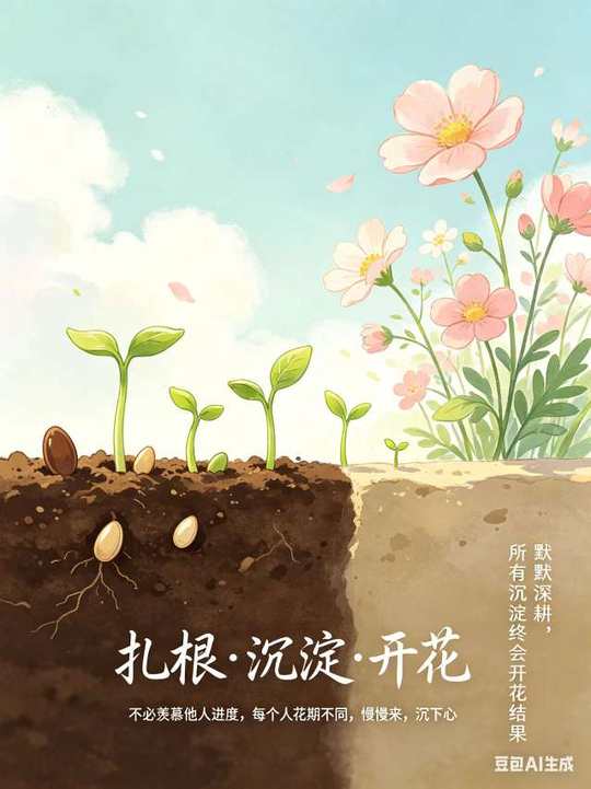 扎根,都是默默看不见的沉淀☀️ 不必羡慕别人的进度,打乱自己的节奏。 每个人花期不同,慢慢来,沉下心。 不急不躁,默默深耕,所有沉淀,终会开花结果✨