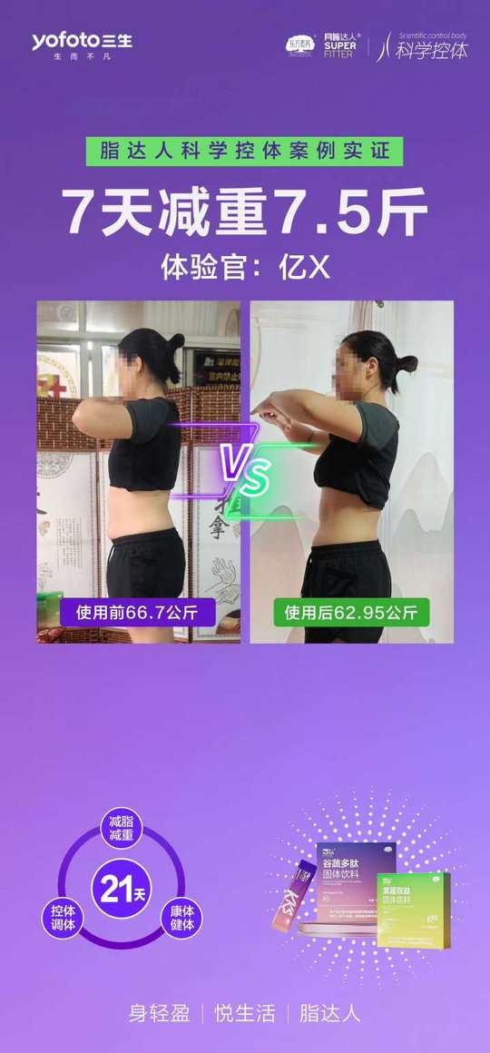看看公司的产品,这太牛逼了,我们不但减脂,还会给你塑形,让你越来越年轻,这样的效果,爱了不😷