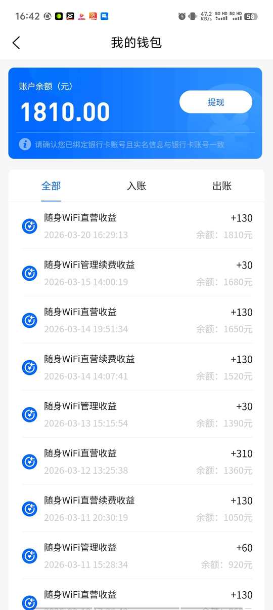 嗨浪随身WiFi ,收益看得